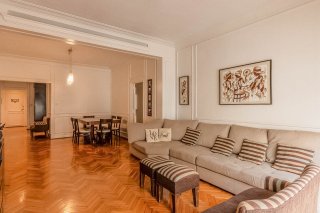 Luminoso semipiso al frente, cuatro ambientes mas dependencia en EXCELENTE ESTADO!!! Comedor principal y gran living con salida al balcón. Orientación este, sol de mañana y luz todo el día!! Pisos de madera de roble de Eslavonia, impecables, tanto en el living como en los dormitorios. Los mismos con amplios placards y aires acondicionados F/C Dos baños completos y refaccionados con sanitarios y grifería de 1° calidad y ventilación natural. Cocina completa con muebles sobre y bajo mesada. Lavadero separado con ventilación natural. Agua caliente central. Edificio de categoría. Apto profesional. Apto crédito Cocheras disponibles a pocos metros!! Con una ubicación estratégica, el departamento se encuentra entre las Avenidas Córdoba y Santa Fe, a una cuadra de Av. Pueyrredón, a 300m de gran cantidad de líneas de colectivos y subte H. Tres cuadras de Plaza Houssay y Hospital de Clínicas. Cercano a los Sanatorios Otamendi, Anchorena, Hospital Alemán, Clínica y Maternidad Suizo Argentina. Ley 5115: accesible - - Toda la información del aviso, incluyendo medidas, precio, impuestos, servicios, etc. son estimativos, sujetos a modificación y no vinculantes, según lo dispuesto en el art. 973, Cód. Civ. y Com.